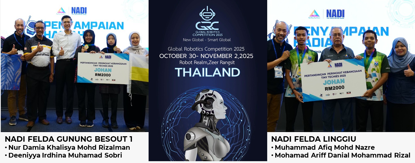 Pencapaian luar biasa ini adalah daripada kumpulan pelajar yang telah mengharumkan nama negara iaitu Muhammad Afiq Mohd Nazre dan Mohamad Ariff Danial Mohammad Rizal dari Pusat Sebaran Maklumat Nasional (NADI) Felda Linggiu bagi kategori Senior, manakala kategori Junior diwakili Nur Damia Khalisya Mohd Rizalman dan Deeniya Irdhina Muhammad Sobri dari NADI Felda Gunung Besout 1.